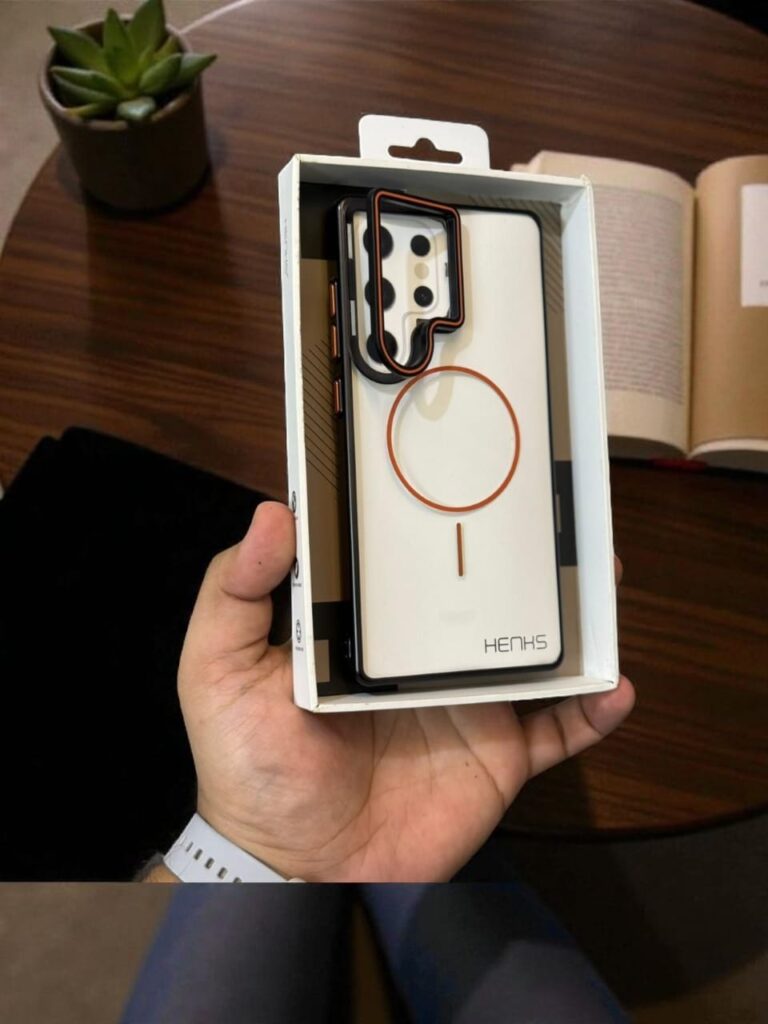 Samsung S25 Ultra Henks Noble Pro Mag Series Stand Case – Slim Transparent Cover with Colored Border & Magnetic Ring Support