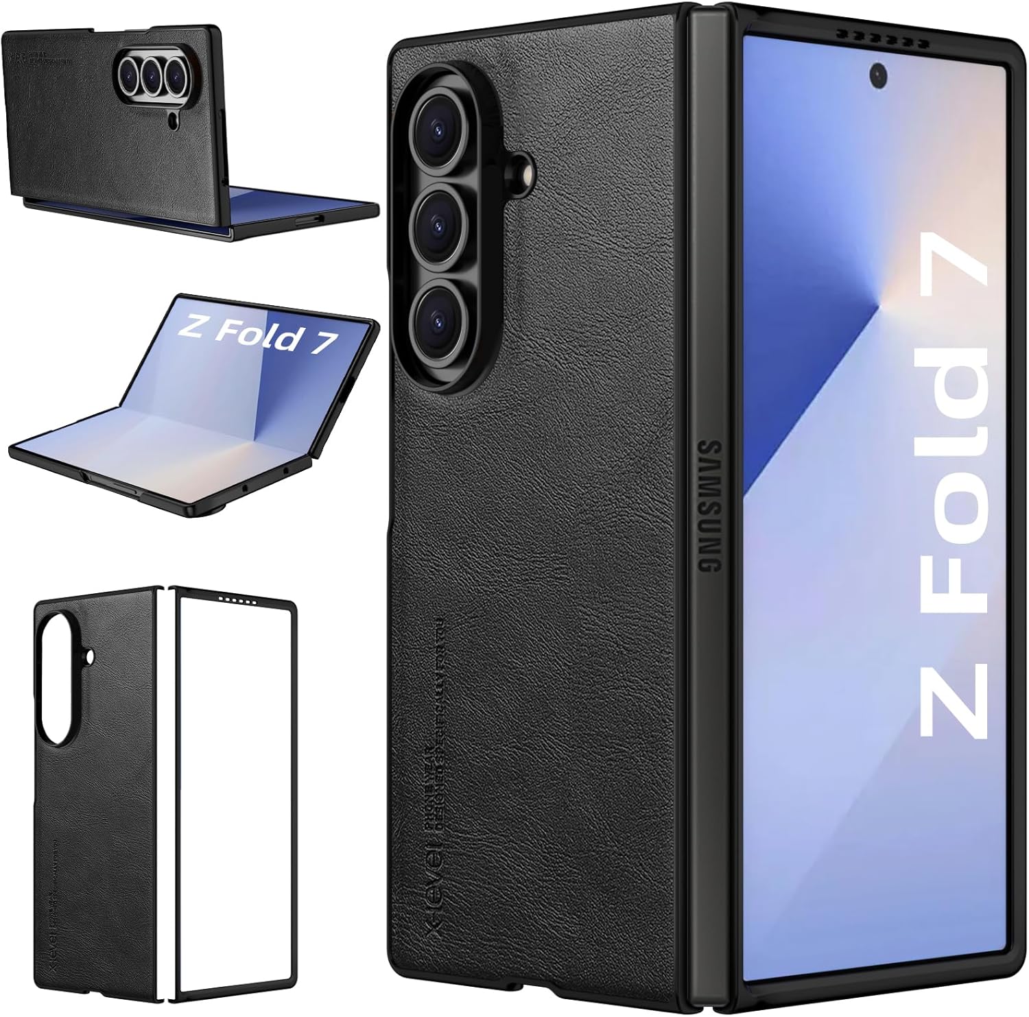 Samsung Galaxy Z Fold 7 X-level, Thin Slim Premium PU Leather | Bumper | Shockproof Protection | Folding Phone Case | Black
