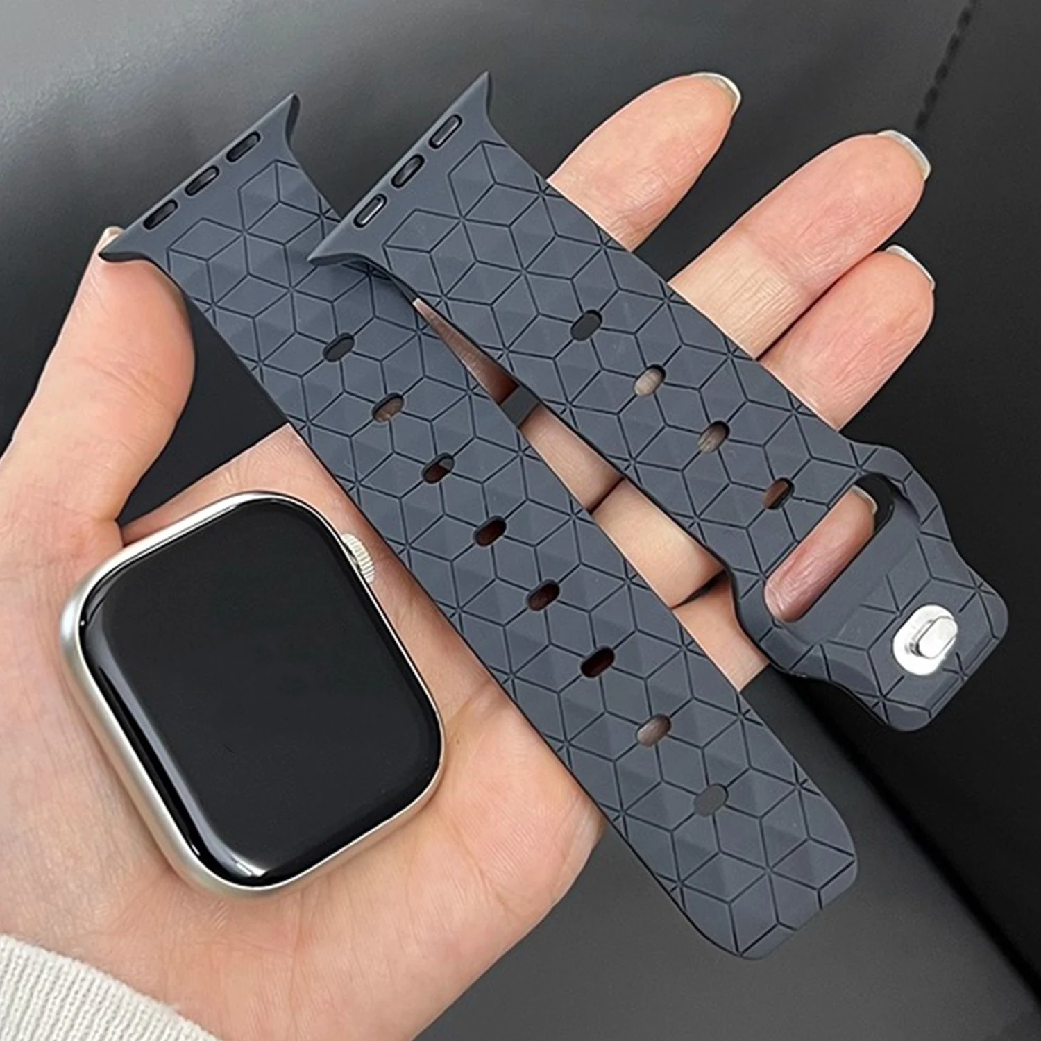 Made from high-quality silicone, it is soft, skin-friendly, and resistant to sweat and water—perfect for workouts, outdoor activities, and daily use. The Faux Leather design enhances breathability while providing a modern and trendy look.