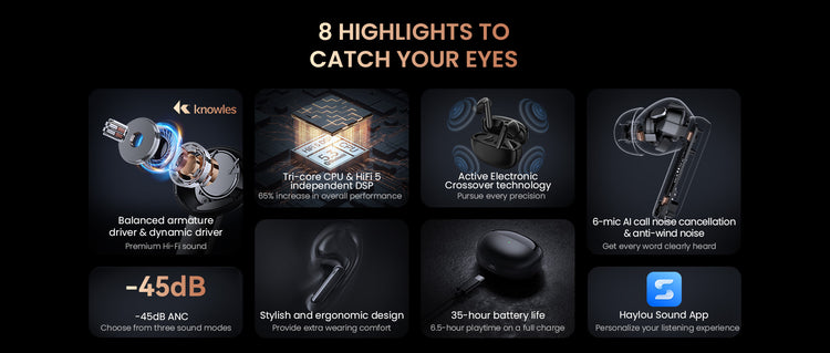 Get full control of your audio performance with our HAYLOU Sound App and customize versatile EQ and noise reduction modes according to your preferences.