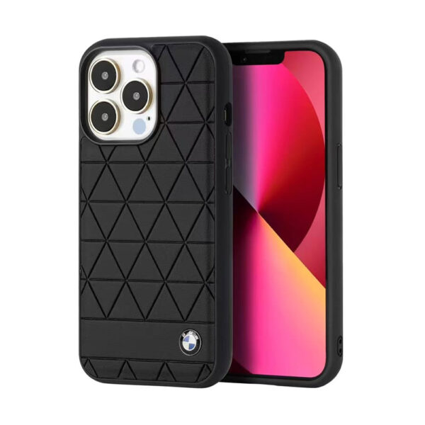 iPhone 13 Pro Max BMW Hexagon Pattern Luxurious Leather Case - Black - Image 2