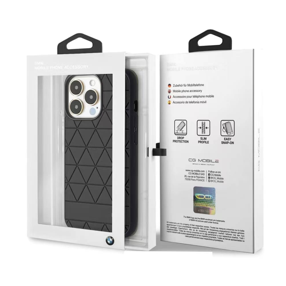 Home Mobile Covers & Protection iPhone 13 Pro Max iPhone 13 Pro Max BMW Hexagon Pattern Luxurious Leather Case – Black