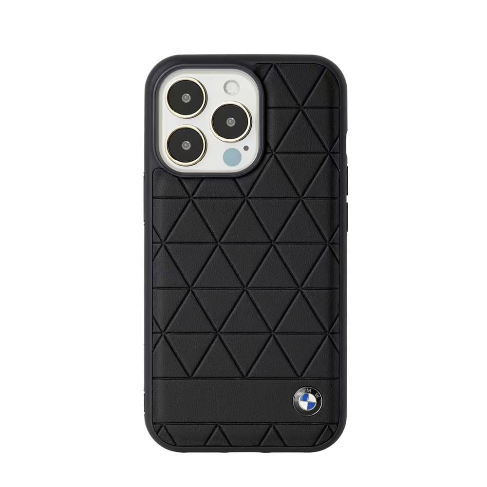 iPhone 13 Pro Max BMW Hexagon Pattern Luxurious Leather Case – Black