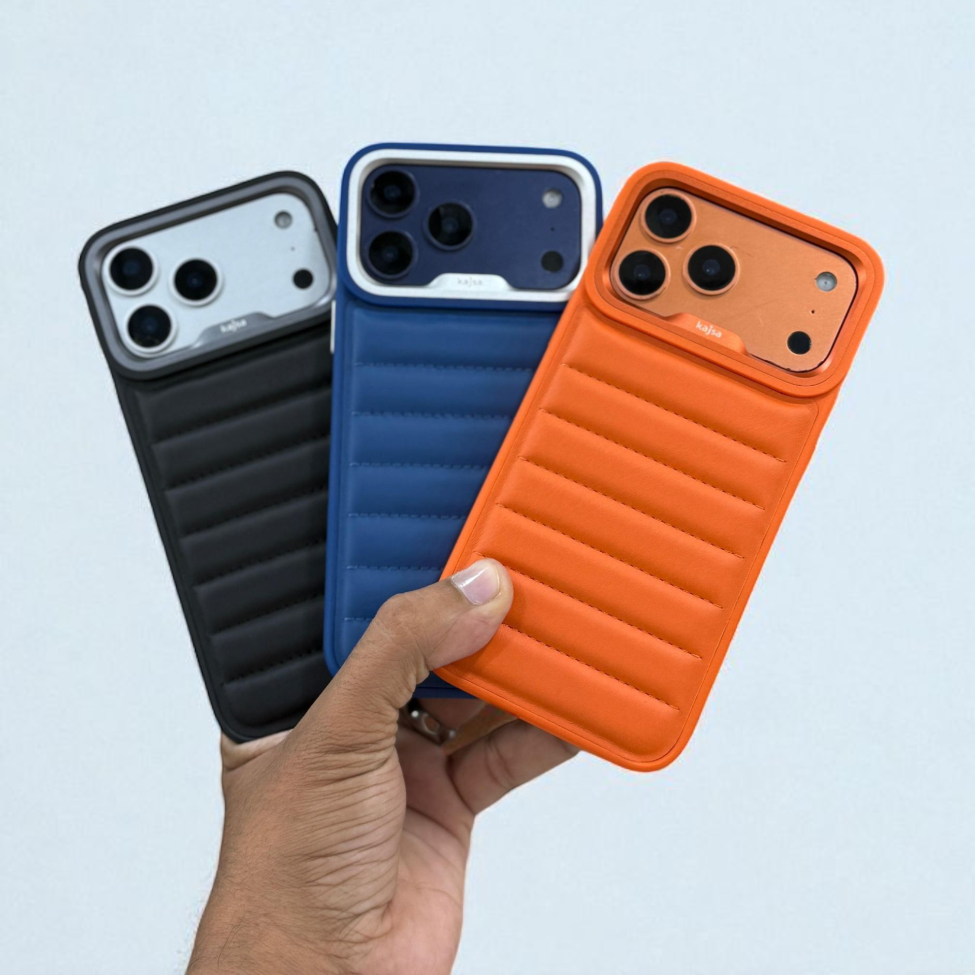 Give your iPhone 17 Pro Max a premium upgrade with the Kajsa Leather Puffer Case. Crafted from high-quality leather with a soft padded design, this case combines luxury and comfort with durable protection. The puffer-style cushioning absorbs shocks and prevents scratches while offering a stylish, trendy look. Available in Black, Blue, and Orange, it’s the perfect mix of elegance, comfort, and reliable defense for your phone.