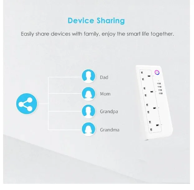 Connect the power strip to your home WiFi and control each socket individually through the mobile app. Turn devices ON/OFF even when you’re not at home. Works with: