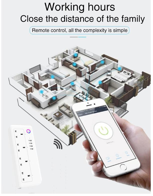 Newest UK Smart WiFi Socket Power Strip Multi Plug with 4 Plug 4 USB Port for Home Office | Wifi Extension | Wifi switch | Wifi Switches