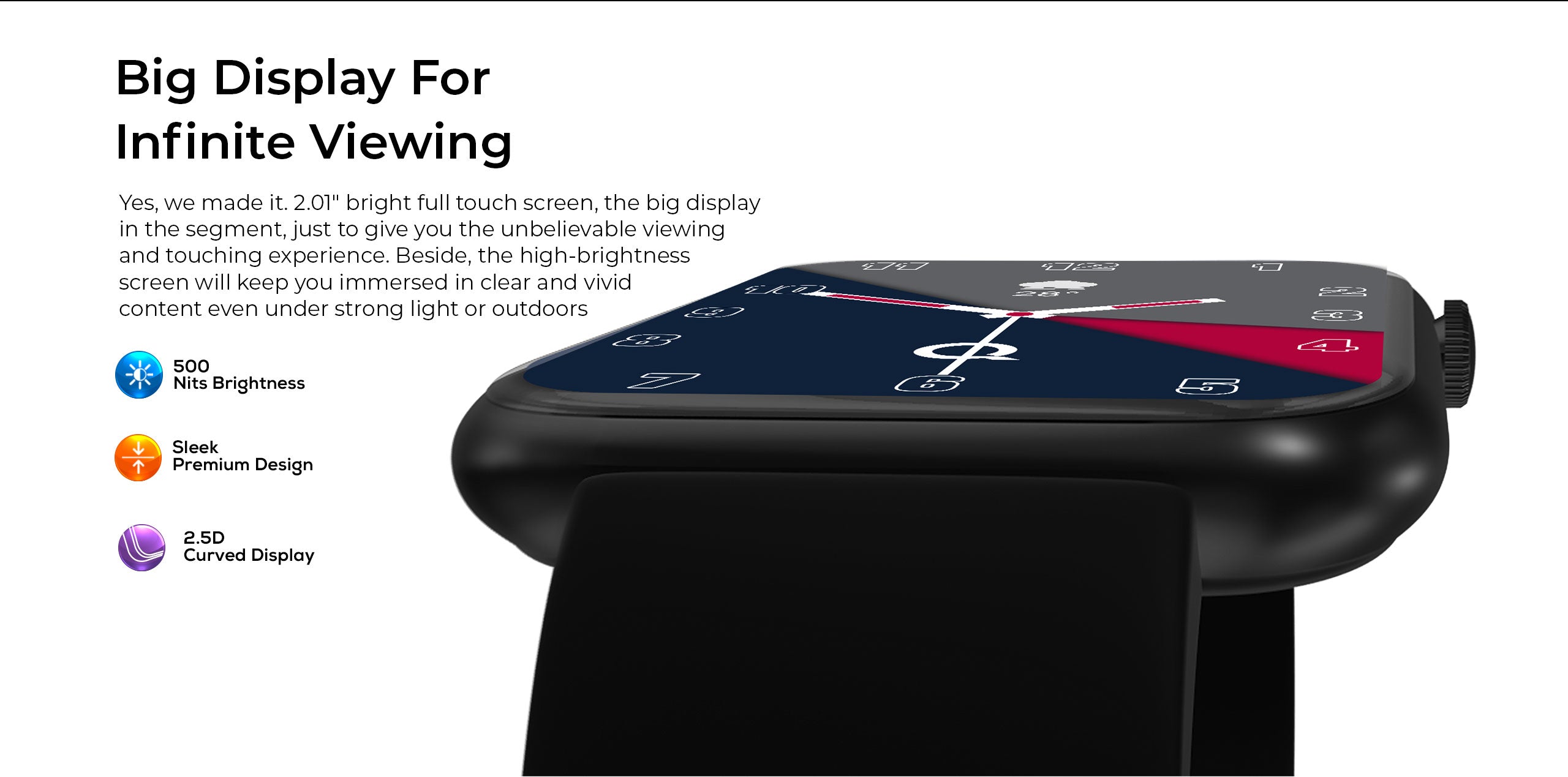 - 2.01″ HD Big Screen