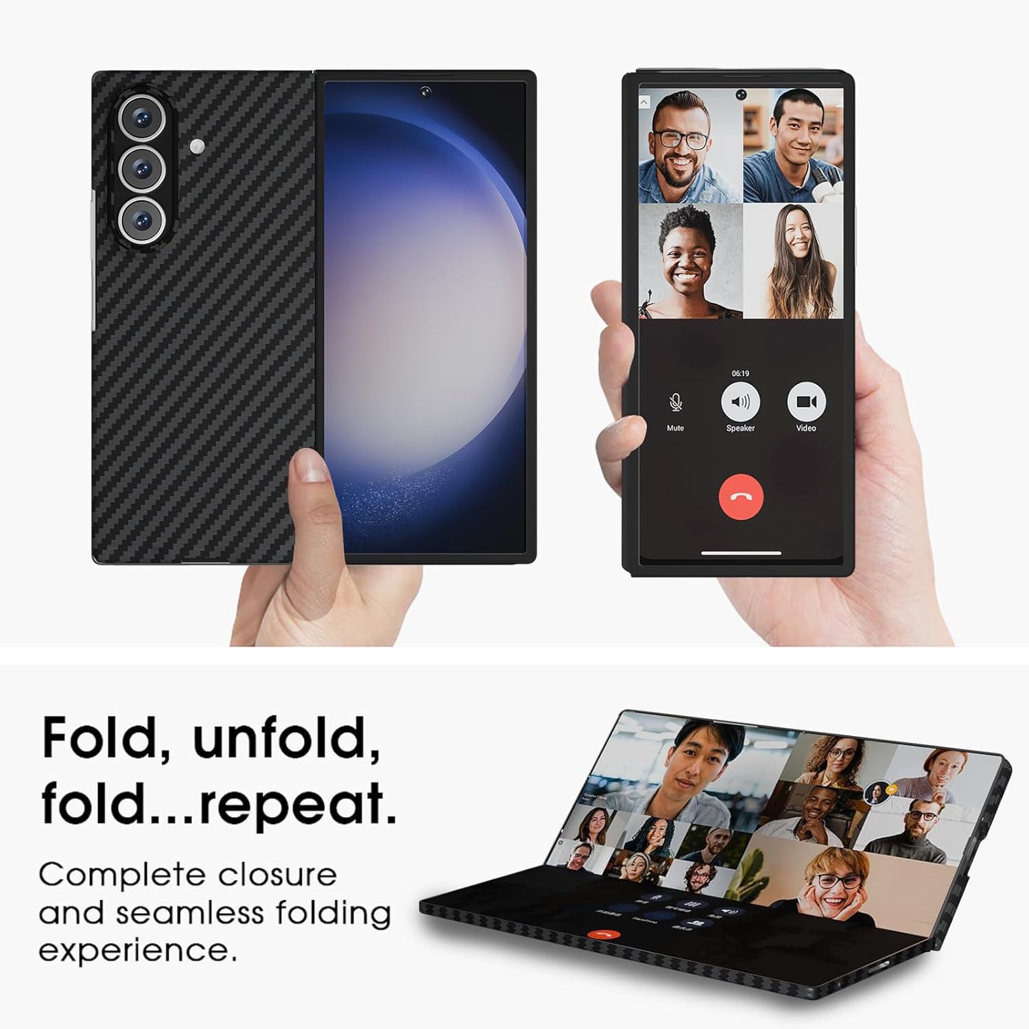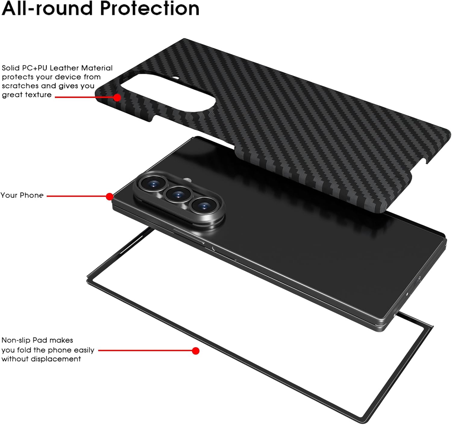- Excellent Grip & Matte Surface: This z fold 7 phone case made of made of durable PC material and ultra soft TPU edge, exquisite carbon fiber pattern design, bring great soft touch feeling without fingerprint, easy to clean. Excellent grip feels but not slippery, The raised lip can protect screen and camera from scratching on flat surfaces