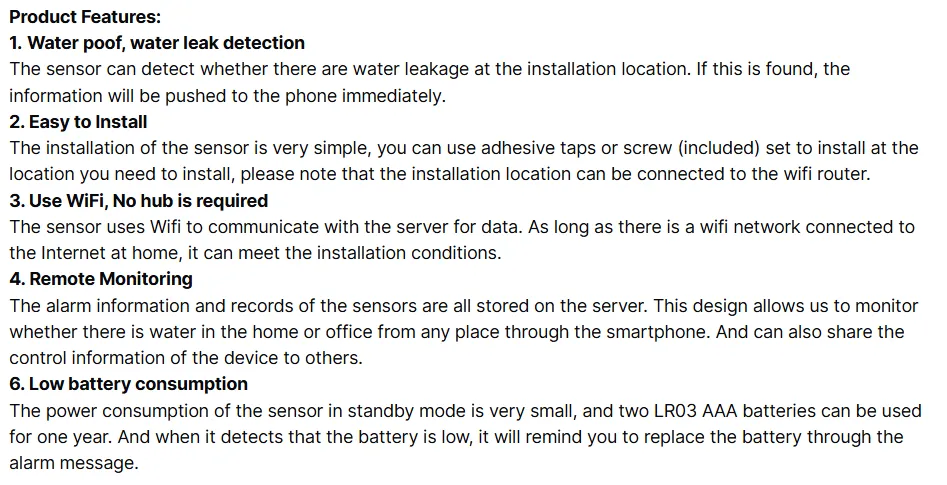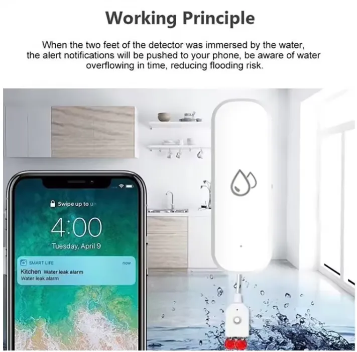 With its compact, wireless design, it’s perfect for installation near sinks, washing machines, water tanks, or bathrooms. The high-sensitivity probes ensure instant detection, helping you prevent costly damage and maintain peace of mind.