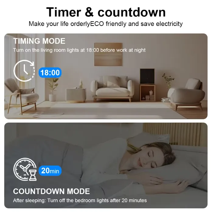 ⏱️ Time Relay & Scheduling – Set timers, countdowns, and automation rules via the app