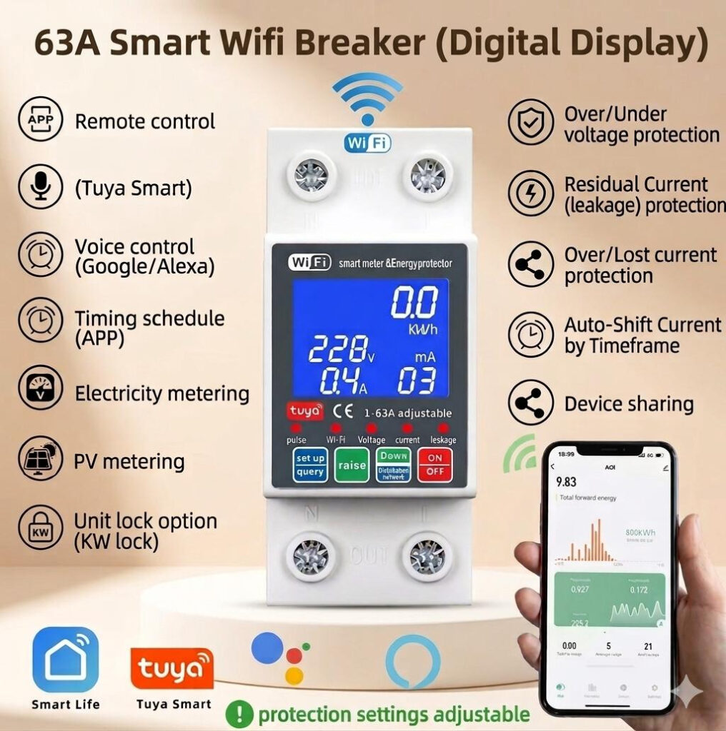 ⚡ 63A High Current Capacity – Suitable for heavy-load appliances and main circuits