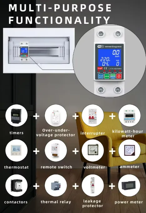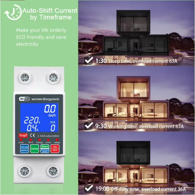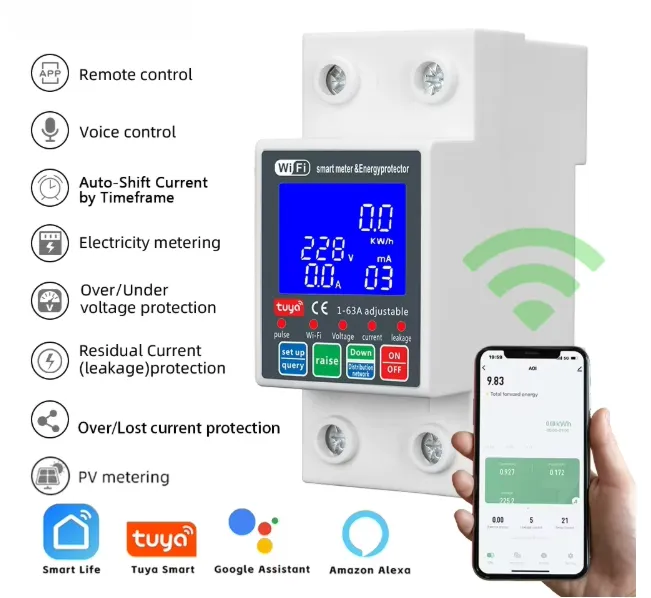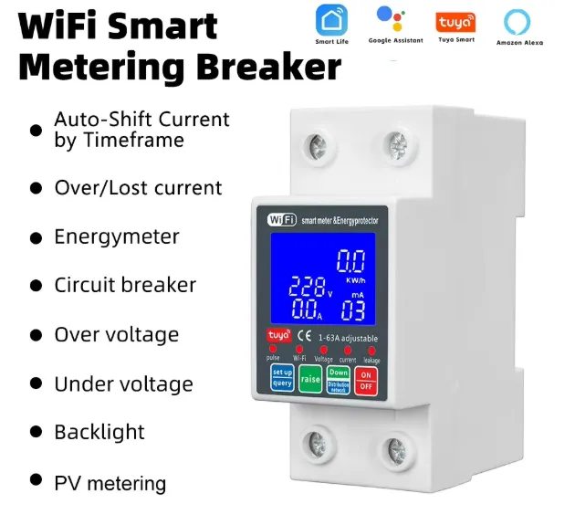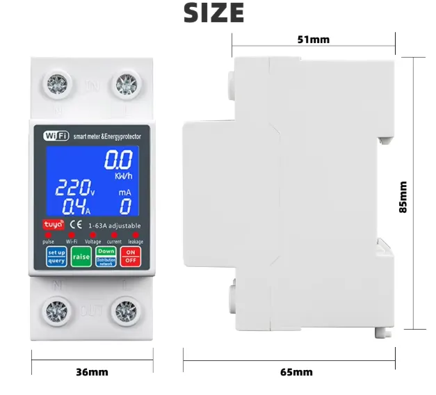 The Tuya Smart WiFi Single Phase 63A (Unit Lock) PC Digital Display Current Leakage Breaker is a smart, high-performance electrical protection device designed for modern homes and commercial environments. Equipped with WiFi connectivity, it integrates seamlessly with the Tuya Smart app, allowing remote control, scheduling, and real-time monitoring of your power usage.