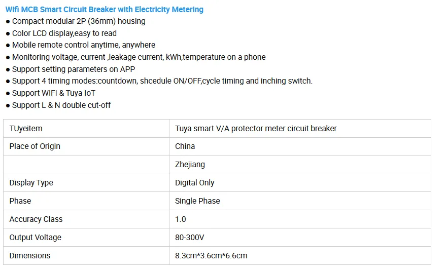 Smart WiFi Enabled: Control and monitor your breaker remotely via the Tuya Smart app
