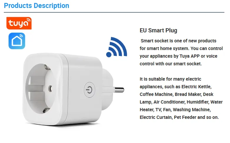 Tuya WiFi Smart Socket Outlet Plug for smart home automation